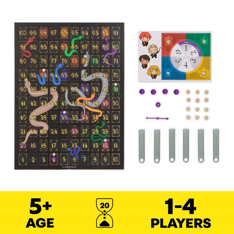 Race to the top of Hogwarts in this magical twist on a classic board game, available at Seahorse Trading Company in Prince Rupert! Play as Harry, Hermione, Ron, or Draco and navigate the Grand Staircase using moveable staircases for clever shortcuts—while avoiding pesky serpents along the way. Flick the spinner to move and, if it lands on the first or second space, shift one of six magic staircases to your advantage. Be the first to reach the top and claim victory! Perfect for Harry Potter fans of all ages, this enchanting game combines strategy, luck, and wizarding fun. Explore more games and toys from Spin Master for endless family entertainment. Bring Hogwarts home and let the magic begin!