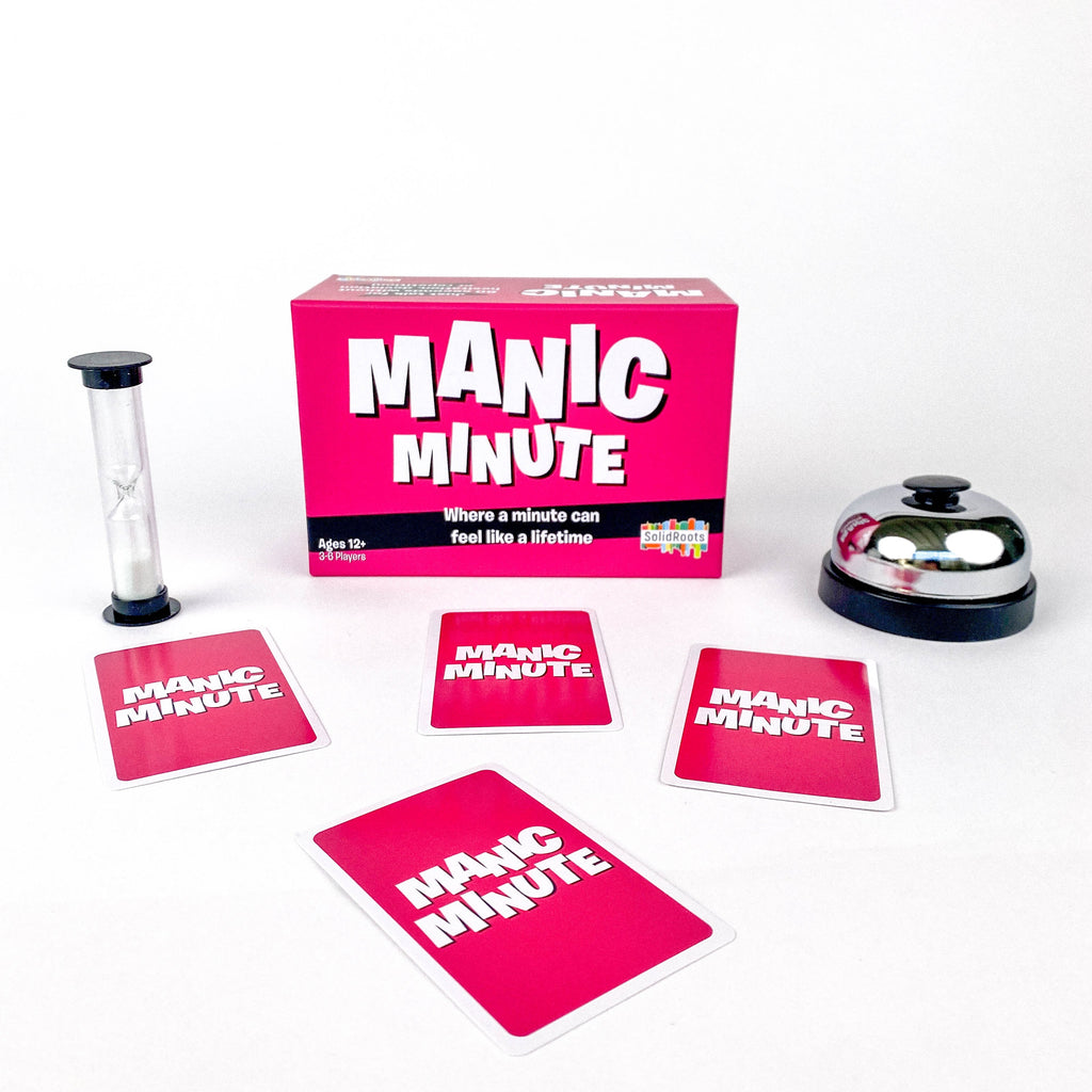 Get ready for non-stop laughter with Manic Minute, available at Seahorse Trading Company in Prince Rupert! This fast-paced talking game challenges players to speak continuously for one minute on a given topic—without hesitation, deviation, or repetition. Sounds easy? Think again! While you’re talking, everyone else is waiting for you to slip up so they can ring the bell, steal your move, and take over the round. Perfect for family game nights, parties, or friendly competitions, Manic Minute is the ultimate test of quick thinking and verbal agility. Take a deep breath, gather your friends, and see if you can survive sixty seconds of pressure. A minute has never felt so long—or so fun! Add Manic Minute to your game collection today and bring the excitement home to Prince Rupert.