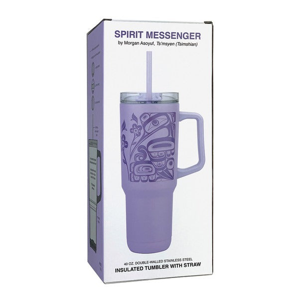 Experience the perfect blend of function and artistry with the 40oz Insulated Tumbler featuring the Spirit Messenger design by Tsimshian artist Morgan Asoyuf. Built with premium 304 stainless steel and a double-wall design, this tumbler keeps drinks hot or cold for hours. The ergonomic handle and reusable straw make it ideal for everyday hydration, while BPA-free, FDA-compliant materials ensure safety. Packaged in a vibrant gift box, it’s a stylish choice for gifting or personal use. Available now at Seahorse Trading Company in Prince Rupert—choose pick up in store for shoppers in Terrace, Haida Gwaii, and North Coast communities.