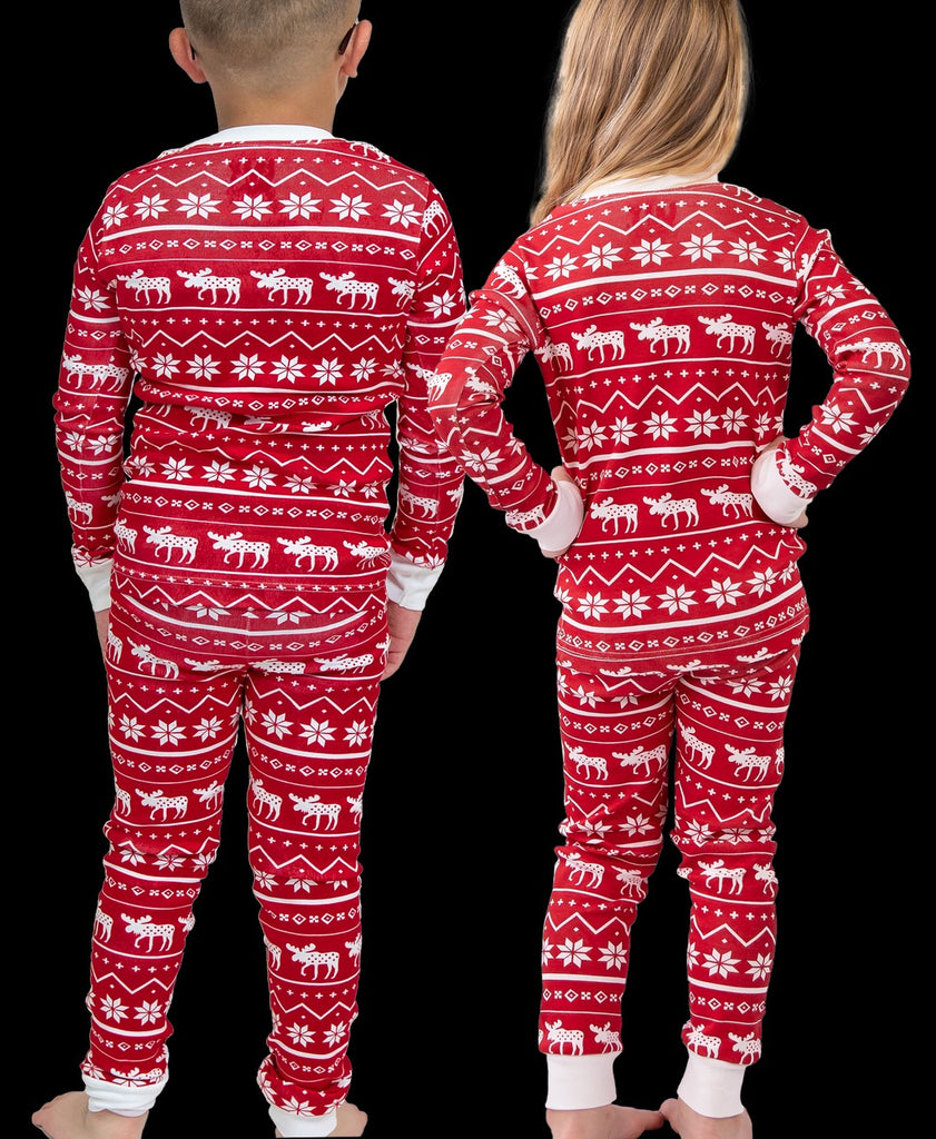 Keep your little one cozy in seasonal style with the Nordic Moose Kids Long Sleeve Pajama Set from Lazy One. Crafted from 100% combed cotton in a snug rib knit, this two-piece set includes a long-sleeve top and matching long pants featuring a bold Nordic moose print. Contrasting neck, waistband and cuffs add detail while the preshrunk fabric ensures lasting fit and colour. Ideal for bedtime routines, winter evenings or festive photo moments in Prince Rupert, this set is both comfortable and cute. Visit Seahorse in Prince Rupert to see it in-store or order online for local pickup. Whether you're shopping for a holiday gift, a matching family PJ look, or simply want quality bedtime wear, this kid-friendly set brings warmth, comfort and woodland charm.